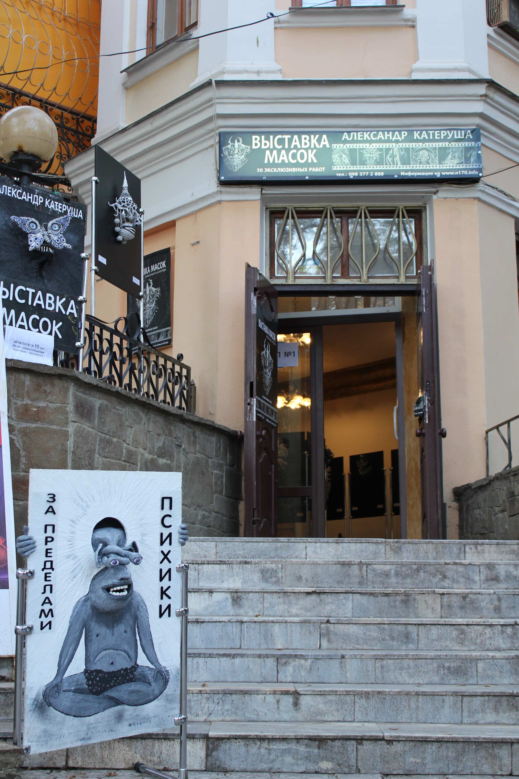 Выставка стартовала в Феодосии. Прекрасные залы позволяли разместить работы максимально удобно для контакта со зрителем. Щиты были выставлены в ряд, позволяя каждому прогуливаться, знакомиться, фотографировать. Несмотря на то, что на выставки продавались билеты, залы пустовали редко. Народ заходил, делился впечатлениями, делал записи в книге отзывов. Мало кто остался равнодушным. Действительно, люди встретились с чем-то ранее невиданным и весьма любопытным. Выставочный зал располагался рядом с пляжем. Энергия скуки, исходящая от такого отдыха, играла нам на руку. По крайней мере, многие были нам искренне благодарны за познавательное разнообразие, за эстетические формы и возможность для удивления. Выставка людям очень понравилась.